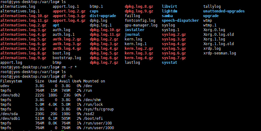 하지만 rm -r * 으로 모든 로그파일을 삭제해버렸다.