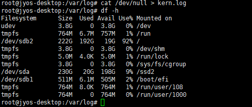 cat /dev/null > /var/log/kern.log